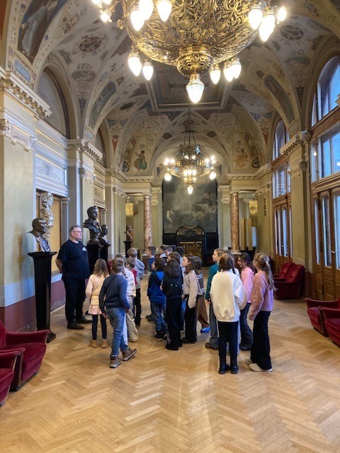 Hned v pondělí po vánočních prázdninách 5. 1. 2026 se děti ze 3. B vydaly na prohlídku Divadla Josefa Kajetána Tyla. Prázdné divadlo bez diváků a herců bylo velmi zvláštní a působilo tajemně. Pan průvodce dětem vyprávěl o historii, ale i moderních úpravách. Prohlédli jsme si části divadla, kde se běžně diváci pohybují: vstupní prostory, schody s Křižíkovými lampami, šatny, foyer, hlediště, orchestřiště či malovanou Němejcovu oponu. Nejzajímavější ovšem byla prohlídka jeviště, kde jsme se dozvěděli o technických vymoženostech, jak funguje točna, opony, světla, stavění kulis a mnoho dalších. Dále jsme viděli nákladní výtah a prostory pro přípravu kulis a pomůcek pro jednotlivé hry. Děti byly nadšené.