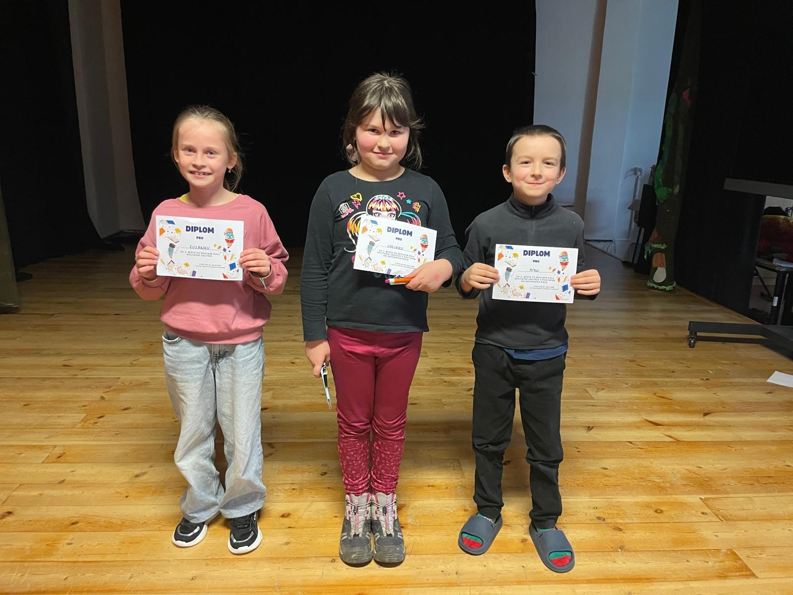 Před jarními prázdninami se v prostorách divadélka uskutečnilo školní kolo recitační soutěže. Děti, které postoupily z ročníkových kol, se sešly, aby předvedly svou odvahu a cit pro přednes básní i vybraných textů. Velkou odměnou pro ty nejmenší žáky a žákyně byla podpora rodičů, kteří zaplnili hlediště a vytvořili příjemnou kulisu. Poděkování patří také kolegyním za pomoc a dobrou náladu. Rozhodování nebylo snadné, ale nakonec byli z každé kategorie vybráni dva žáci, kteří nás budou reprezentovat v obvodním kole dětské recitace.