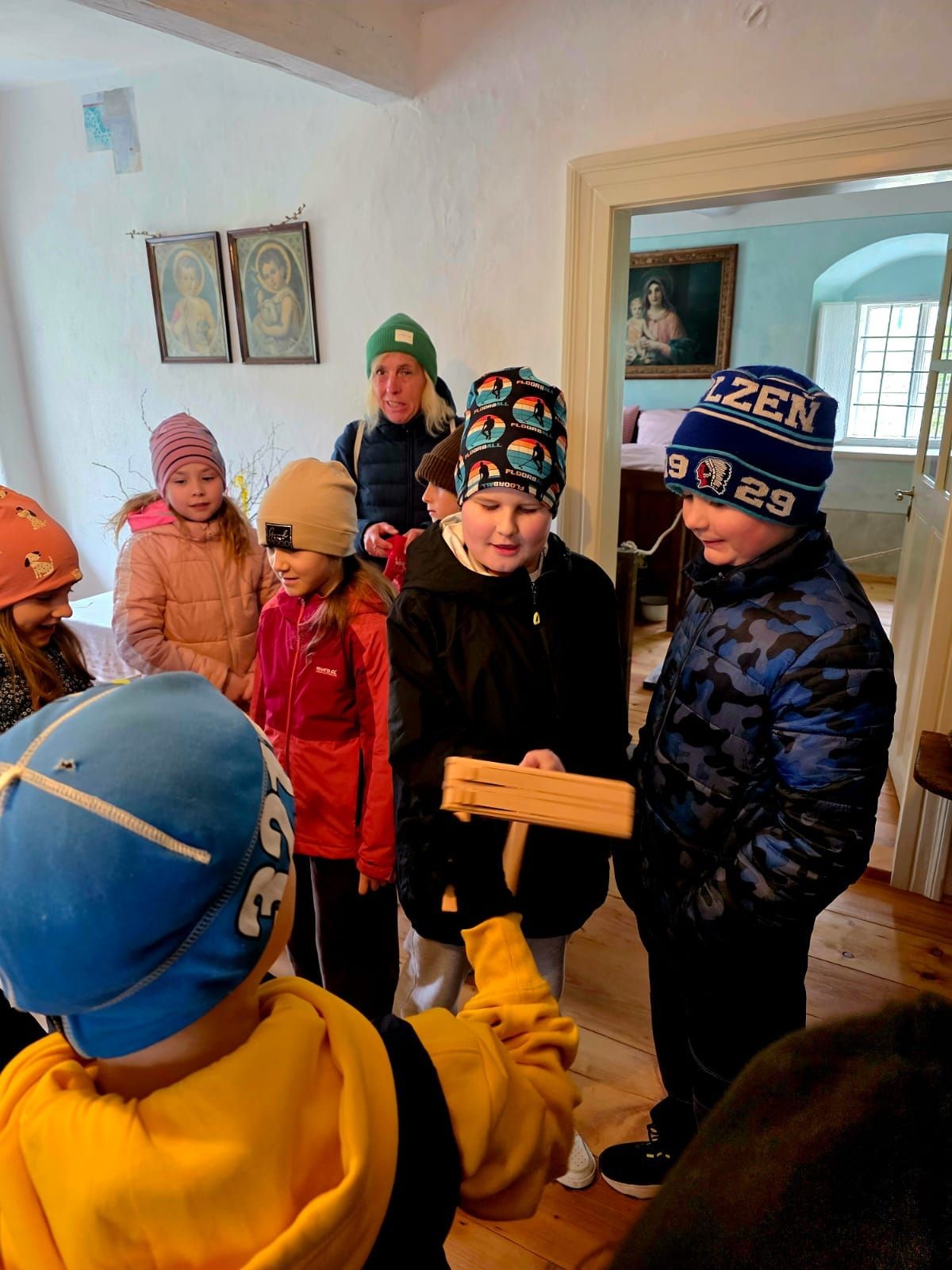 V týdnu před Velikonocemi vyrazily děti z 2.A a 2.B na statek u Matoušů. Paní průvodkyně nás stručně seznámily s historií Velikonoc i nejznámějšími velikonočními tradicemi. Při prohlídce statku jsme tak mohli obdivovat krásně nazdobená vajíčka, upečený mazanec i upletené pomlázky. Abychom neuschli a byli jsme i v příštím roce zdraví, paní průvodkyně nás pomlázkami při odchodu pomladily. Kromě krásných zážitků si děti navíc odnesly malou kachničku, která jim prohlídku na statku bude připomínat i v budoucnu.